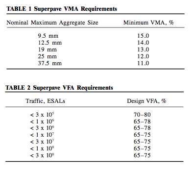 Είναι γενικά αποδεκτό ότι τα παραπάνω χαρακτηριστικά προσδιορίζουνε την επιτελεστικότητα του ασφαλτικού σκυροδέματος. Πολλά κενά αέρα ή VFA και μη επαρκή VMA υποδυκνείουνε προβλήματα αντοχής στον χρόνο. Λίγα κενά αέρα ή VFA μπορεί να σημαίνουν προβλήματα τροχαυλάκωσης.